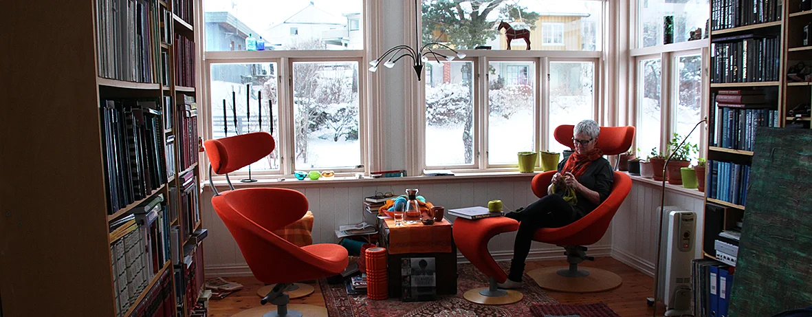 Eva vever tekstiler til bekledning, skjerf, sjal, løpere, ryer og pledd. Liker å eksperimentere med farger, garntyper og teknikker.